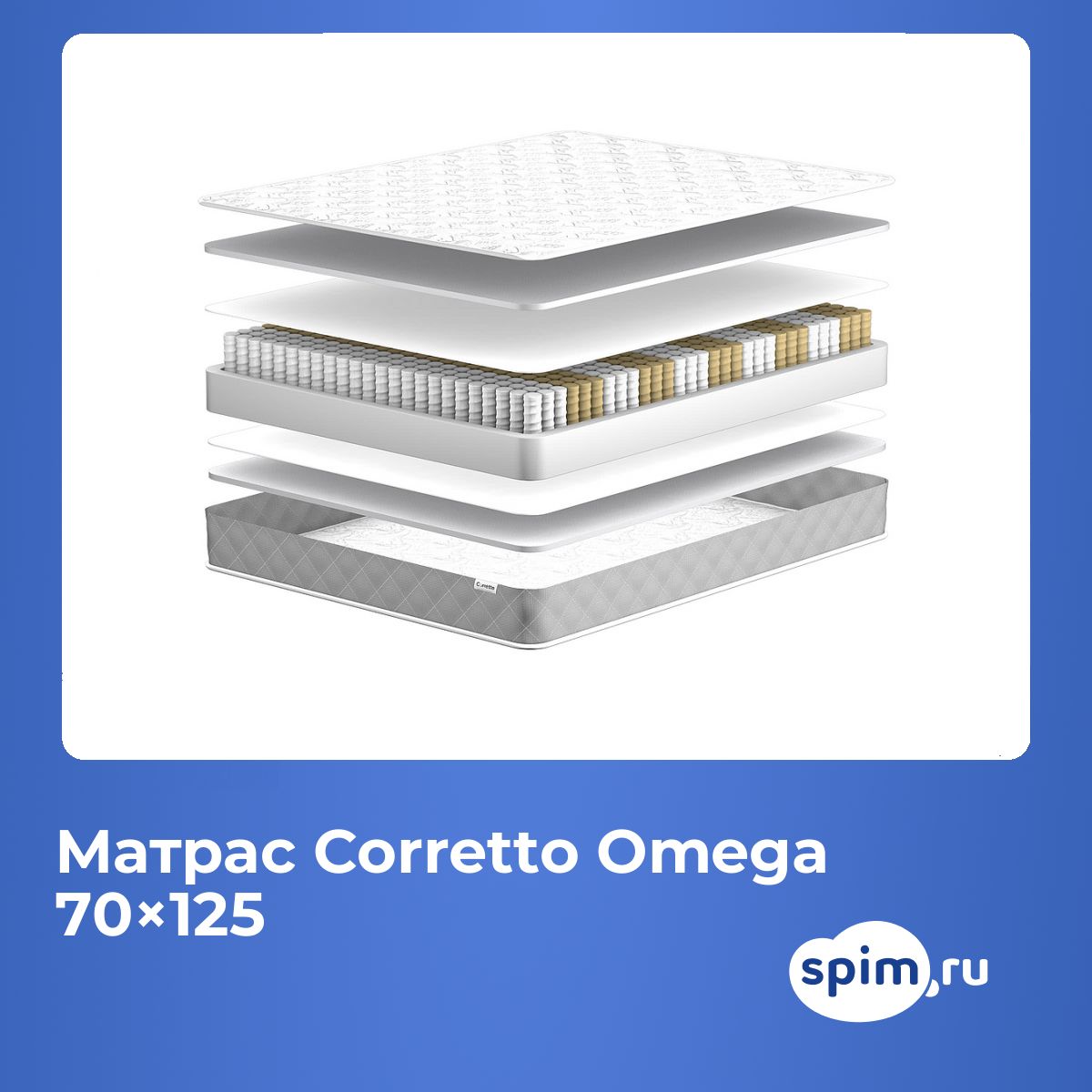 Максимальная нагрузка, кг: 100. Высота, см: 20. По Вашему желанию матрас может быть доставлен в скрученном виде. Наполнение моделиМодель Corretto Omega средне-жесткая, в качестве материала используется современный и гипоаллергенный материал струттоформ. Прочный и эластичный, он создает упругую поддержку для позвоночника и всего тела. Благодаря наличию пор внутри способствует установлению оптимальной температуры на поверхности. А также характеризуется длительным сроком эксплуатации.Особенности работы пружинВ центре расположена конструкция с независимым распределением пружин, где на 1 кв. метр приходится по 256 элементов. Каждый такой элемент помещен в отдельный чехол и оказывает точечное воздействие на тело. Пружины распределяют нагрузку равномерно по всей поверхности, действуют на позвоночник, разгружая его от лишней нагрузки.Чехол из трикотажаЧехол модели выполнен из трикотажной ткани.Защита матрасаДля защиты поверхности от загрязнений, попадания пыли и влаги на матрас рекомендуем купить защитный наматрасник или водонепроницаемый наматрасник-чехол.Другие моделиПосмотрите также другие пружинные модели: Corretto Yason, Corretto Vega.