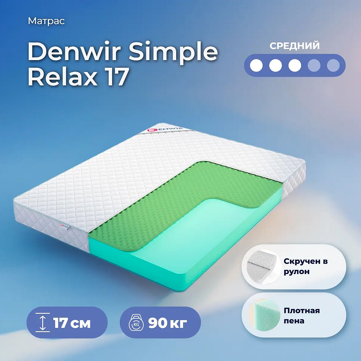 Матрас «Denwir Simple Relax 17» — средней жесткости, которая подходит большинству людей среднего телосложения. Это — оптимальный вариант и детям, и взрослым, и пожилым людям.