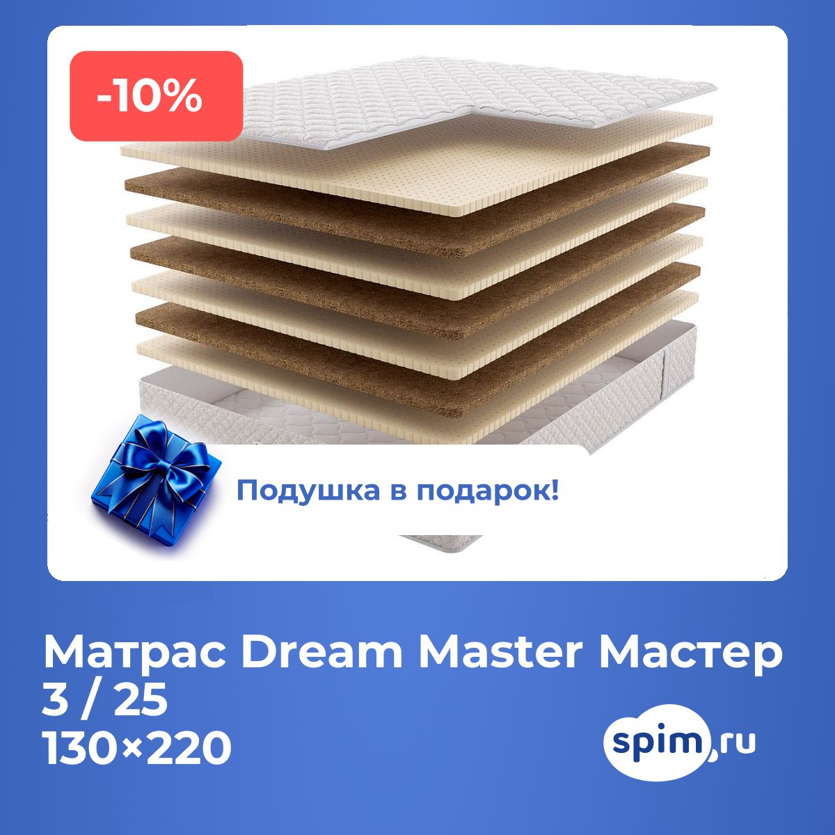 При покупке любого матраса, кроме моделей из серий "Топпер", вы получите в подарок: