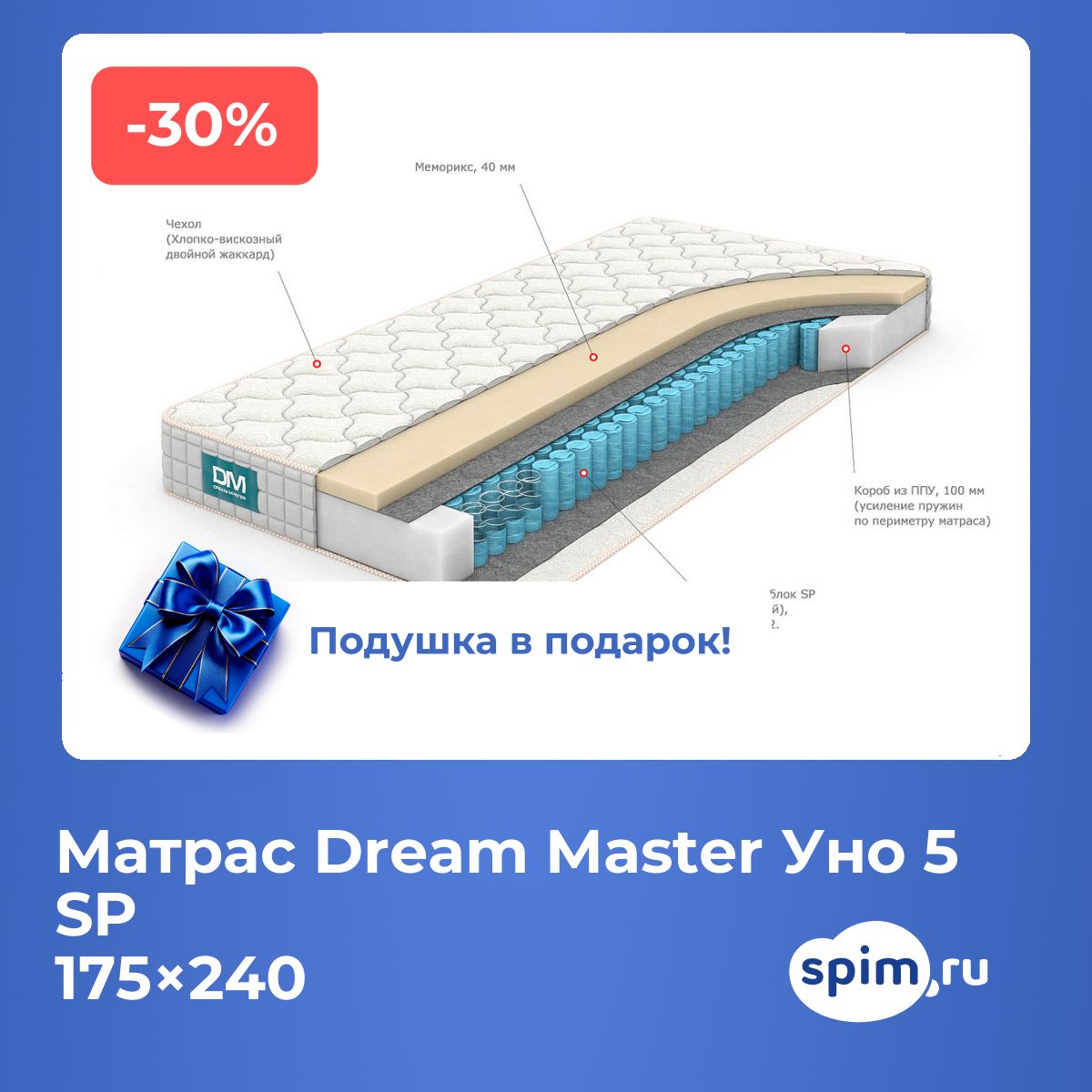 При покупке любого матраса, кроме моделей из серий "Топпер", вы получите в подарок: