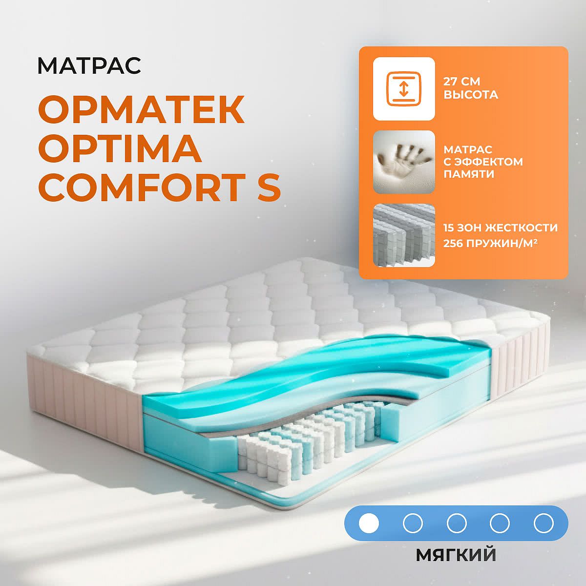 Советы по уходуРекомендуется использовать защитный наматрасник (не входит в комплект) для сохранения свежести и продления срока службы матраса. О производителеОрматек — ведущий российский производитель товаров для сна. Продукция бренда отмечена экспертами, сочетает современные технологии и высокое качество материалов. Матрасы Орматек известны выверенным балансом комфорта и долговечности, что подтверждено независимыми испытаниями.