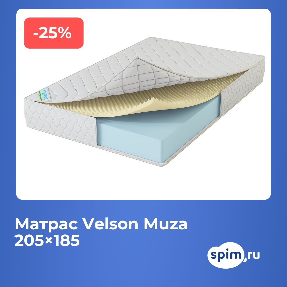 Советы по уходуДля сохранения чистоты и продления срока службы рекомендуется использовать защитный наматрасник (не входит в комплект). О производителеМатрас Velson Muza выполнен в России с акцентом на комфорт и долговечность.
